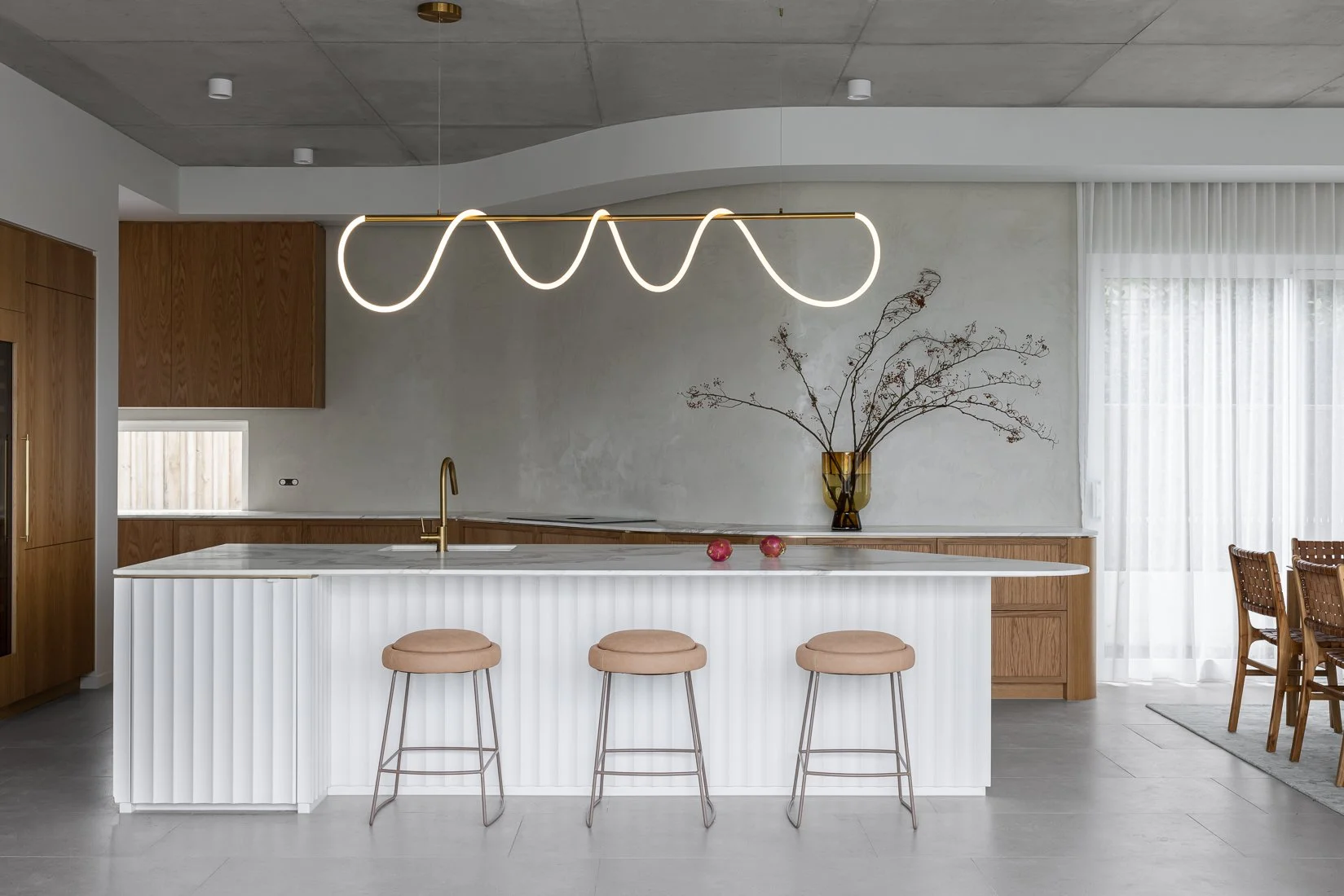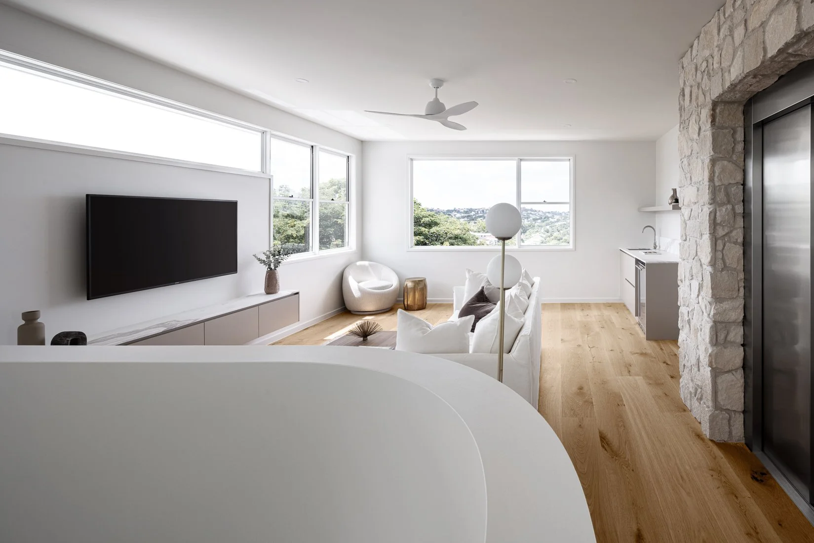 Nestled in the hills of Auchenflower QLD, Clare House is designed to harmonise with its natural surroundings. Positioned on a sloping block, its bold cantilevered form creates a sense of lightness, maximising its elevated vantage point and expansive views of Brisbane’s skyline. Thoughtful planning ensures a balance between privacy and openness, enhancing natural light, airflow, and a seamless indoor-outdoor connection.